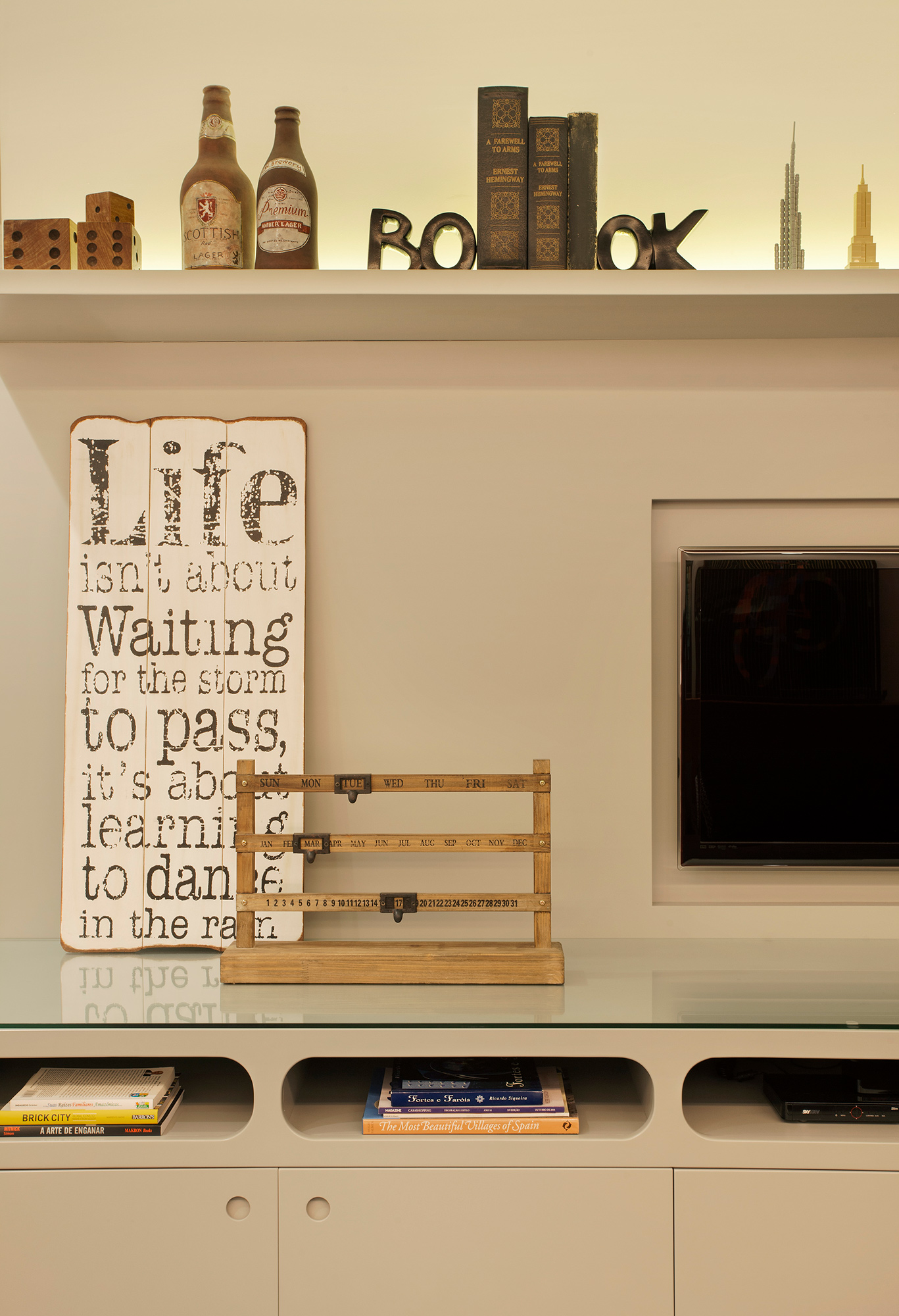 O colorido do tapete, dos itens de decoração e do acervo pessoal de objetos lúdicos compõe o espaço trazendo personalidade e história para o projeto.