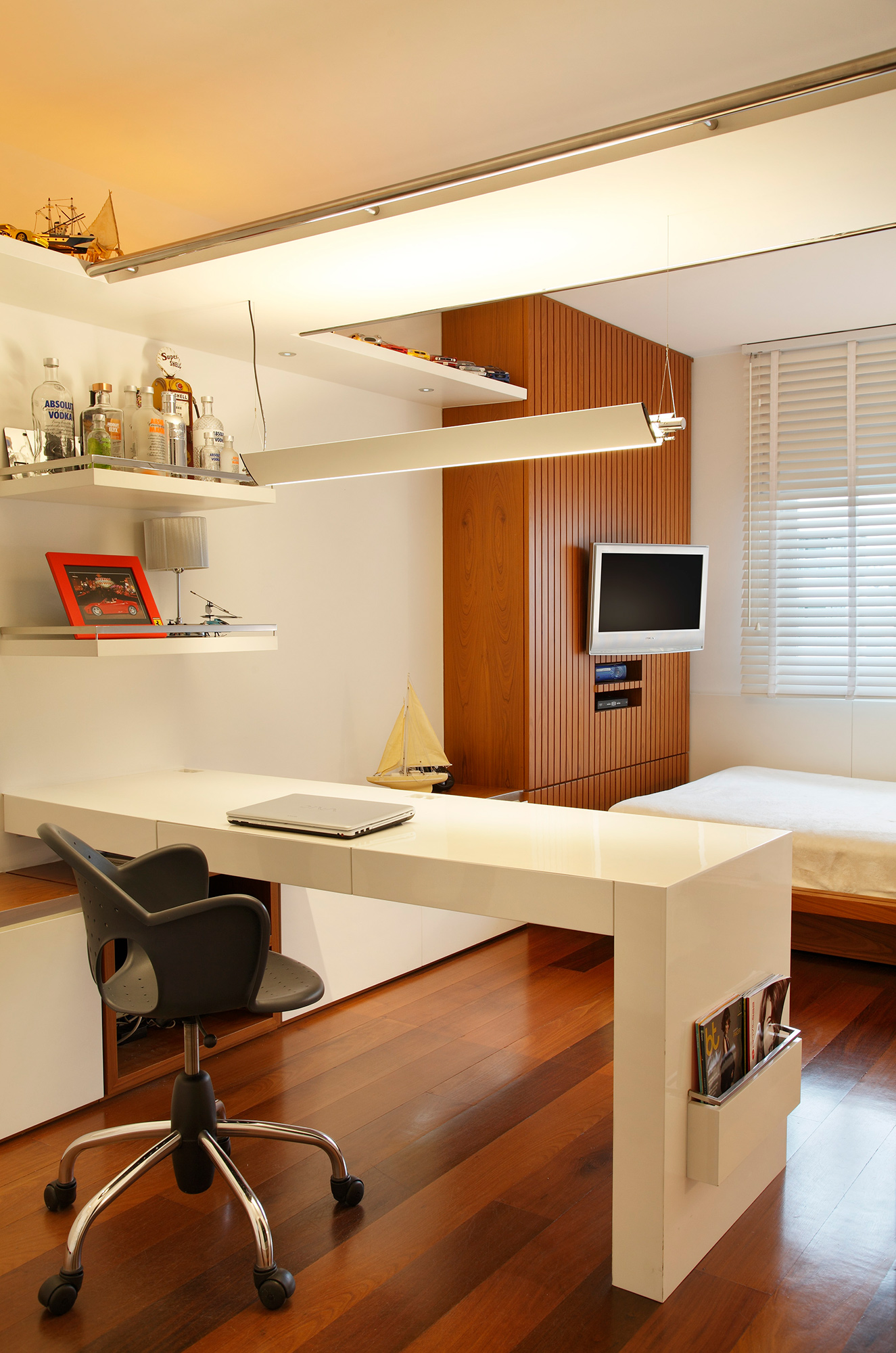 Originalmente com 4 quartos o duplex sofreu grandes intervenções com objetivo de criar amplos espaços para o casal e os dois filhos adolescentes.