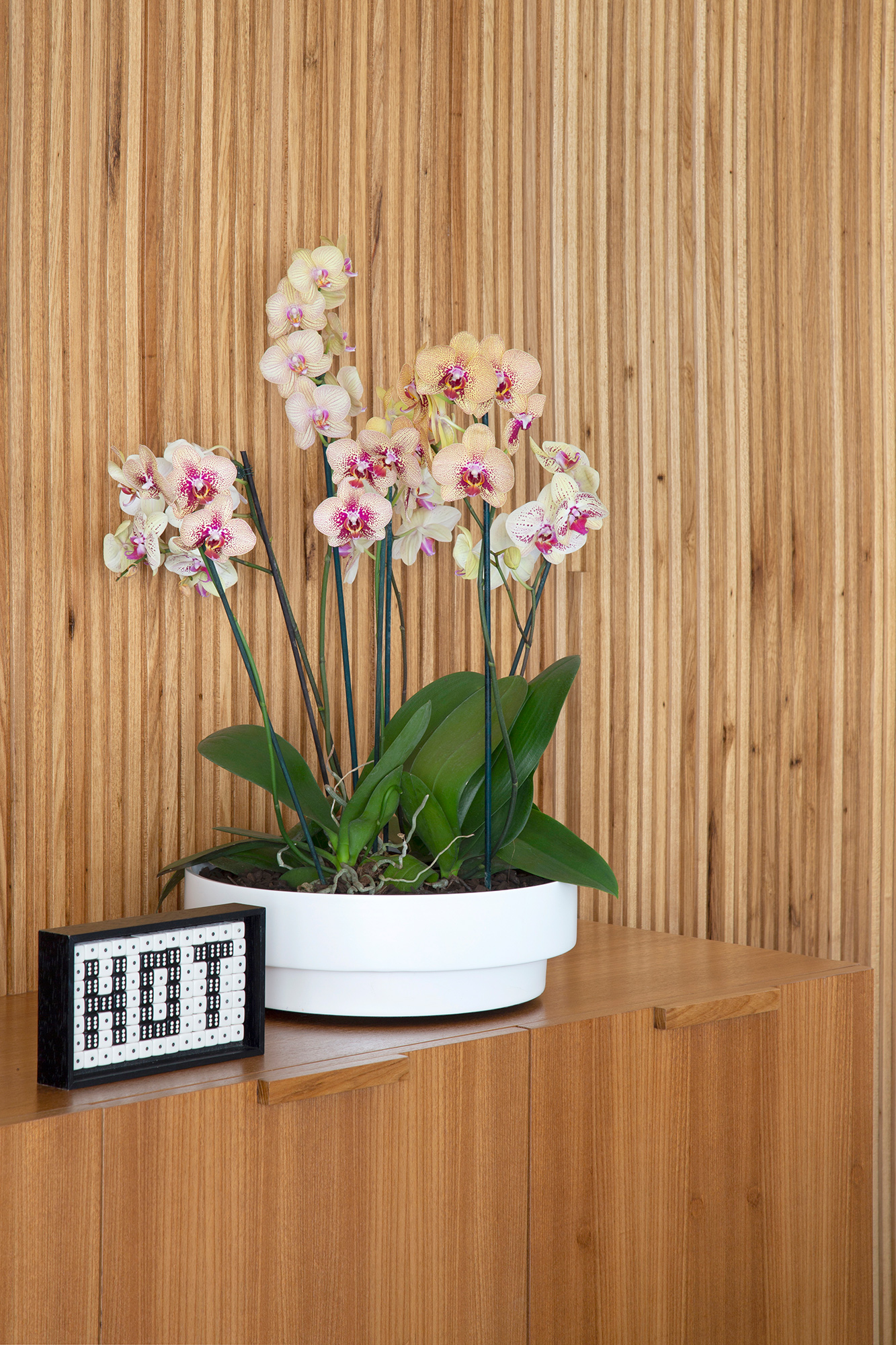 A escolha dos revestimentos, a ausência de tapetes e “abuso” da cor e da madeira para compensar o aconchego que eles trazem foram os principais recursos utilizados para entregar um apartamento prático, atemporal e com a cara dos sete donos!