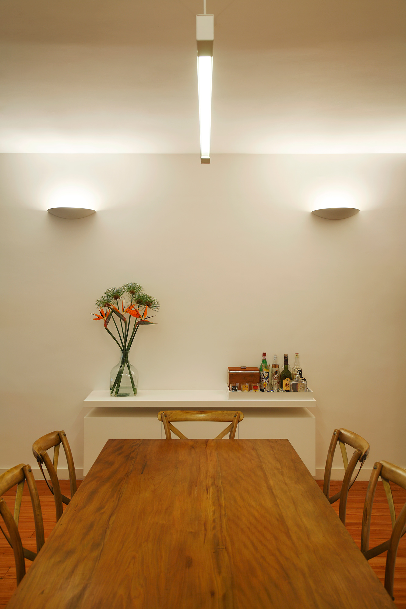 Com exceção do piso original em tábua corrida de peroba do campo e o pé direito alto, nada mais foi mantido.