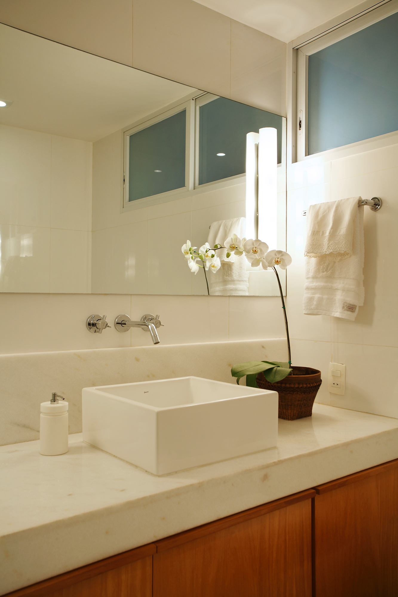 Os moradores queriam um apartamento atemporal, com base neutra e jeito de self-made.